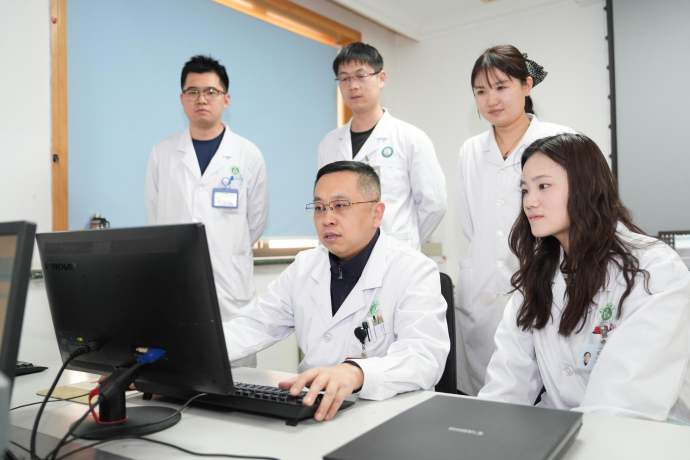 于鹏飞(前排左)团队为患者制定治疗方案