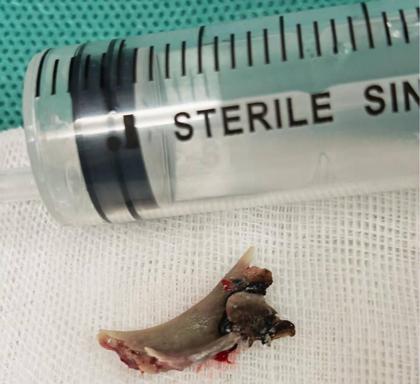 手术取出的鸡骨