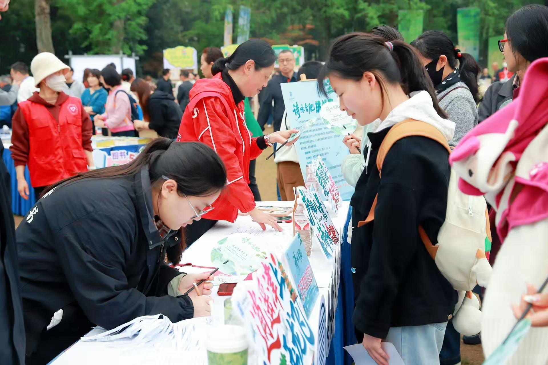 此外,诗咏合肥挑战赛、“一页心动”盲猜书名、寻找百名好读之星、未来对话站等特色活动人气爆棚,市民踊跃参与、热情打卡。值得一提的是,图书公益捐赠区温情涌动,不少市民带着闲置书籍前来捐赠,大家以书为桥,让一本本闲置书籍承载知识和希望、传递温暖与力量。