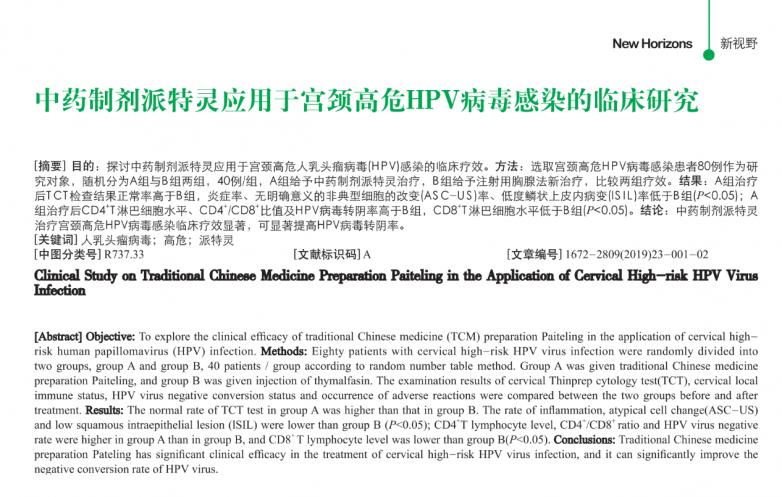 研究称派特灵对高危HPV效果优势 学术期刊公布数据证据
