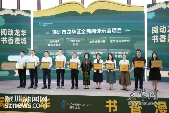 现场还表彰龙华知识跨年奇妙夜、“对话大家”讲坛、龙华城市书房、龙华区诗词大会等10个“深圳市龙华区全民阅读示范项目”,以标杆引领带动全民参与阅读活动。