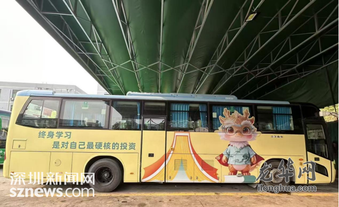流动书香大巴:3辆书香主题大巴穿梭全区,车身醒目印制龙华专属AI虚拟荐书官“龙小阅”鲜活形象,搭配传递阅读力量的经典金句,打造兼具科技感与文化力的可移动城市阅读新名片,让书香随车轮流转遍布龙华大街小巷。