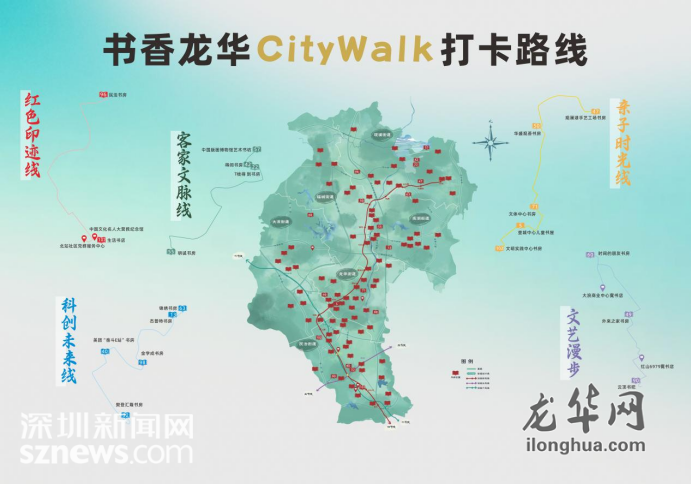 书香龙华CityWalk打卡路线:推出红色印迹、客家文脉、科创未来、亲子时光、文艺漫步等5条主题路线,深度融合龙华本土人文底蕴与创新发展活力,解锁阅读打卡新玩法。