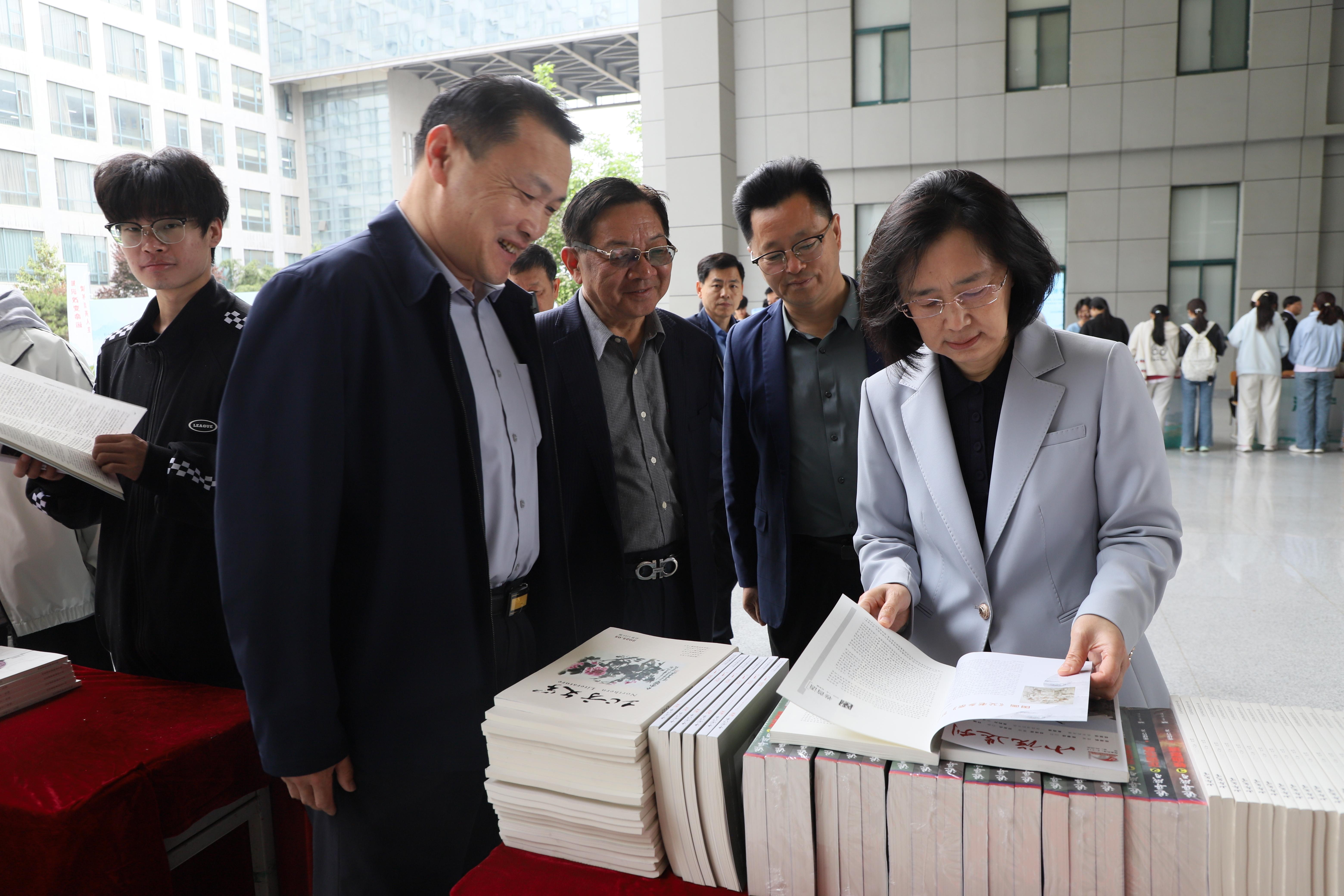 赠书环节中,济宁市作家协会副主席兼秘书长周中祥、济宁市读书协会会长郭玉向济宁医学院赠送图书一千余册,王文姮代表学校接受赠予并颁发荣誉证书。随后,济宁市书法家协会副主席王超与卢国华共同展示了“青衿传儒韵·书香济医魂”的书法长卷。