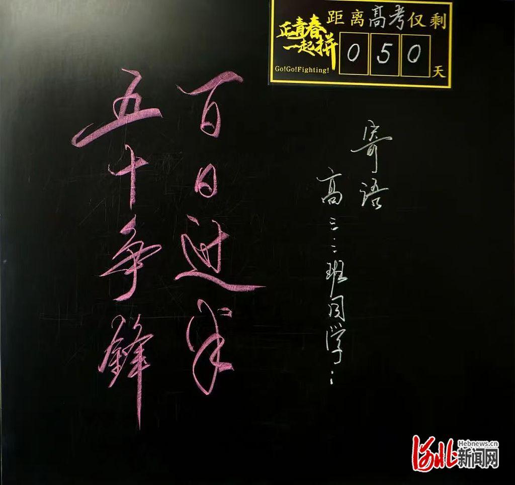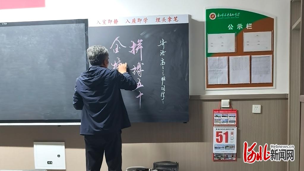 高考倒计时50天之际,唐山东方教育集团总校长胡小环的一段暖心举动,在网络上刷屏,感动无数网友。没有隆重的仪式,为不打扰学生休息,他深夜悄悄走进高三各班教室,在黑板上写下8字励志短语,以最朴素的方式为学子加油鼓劲。