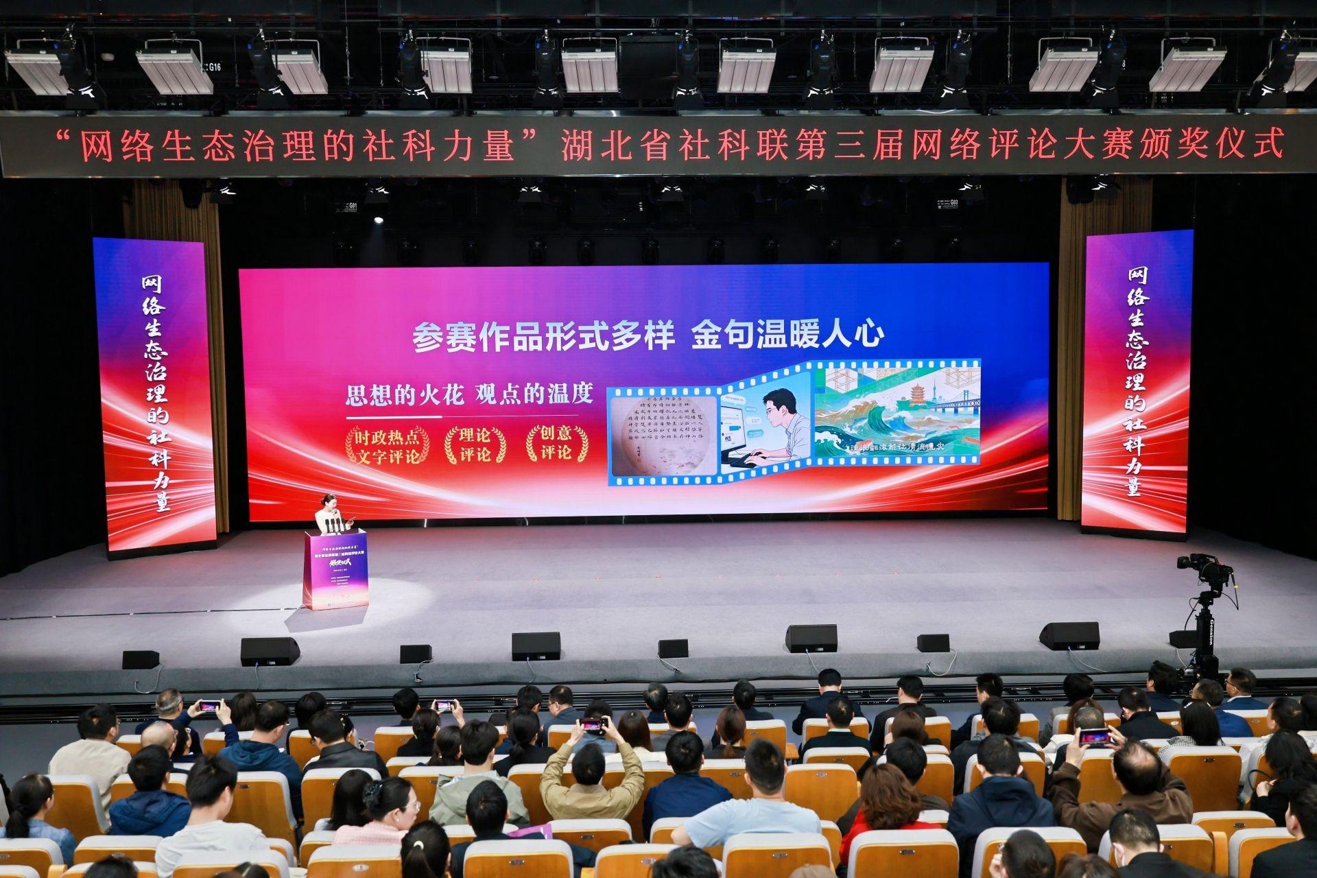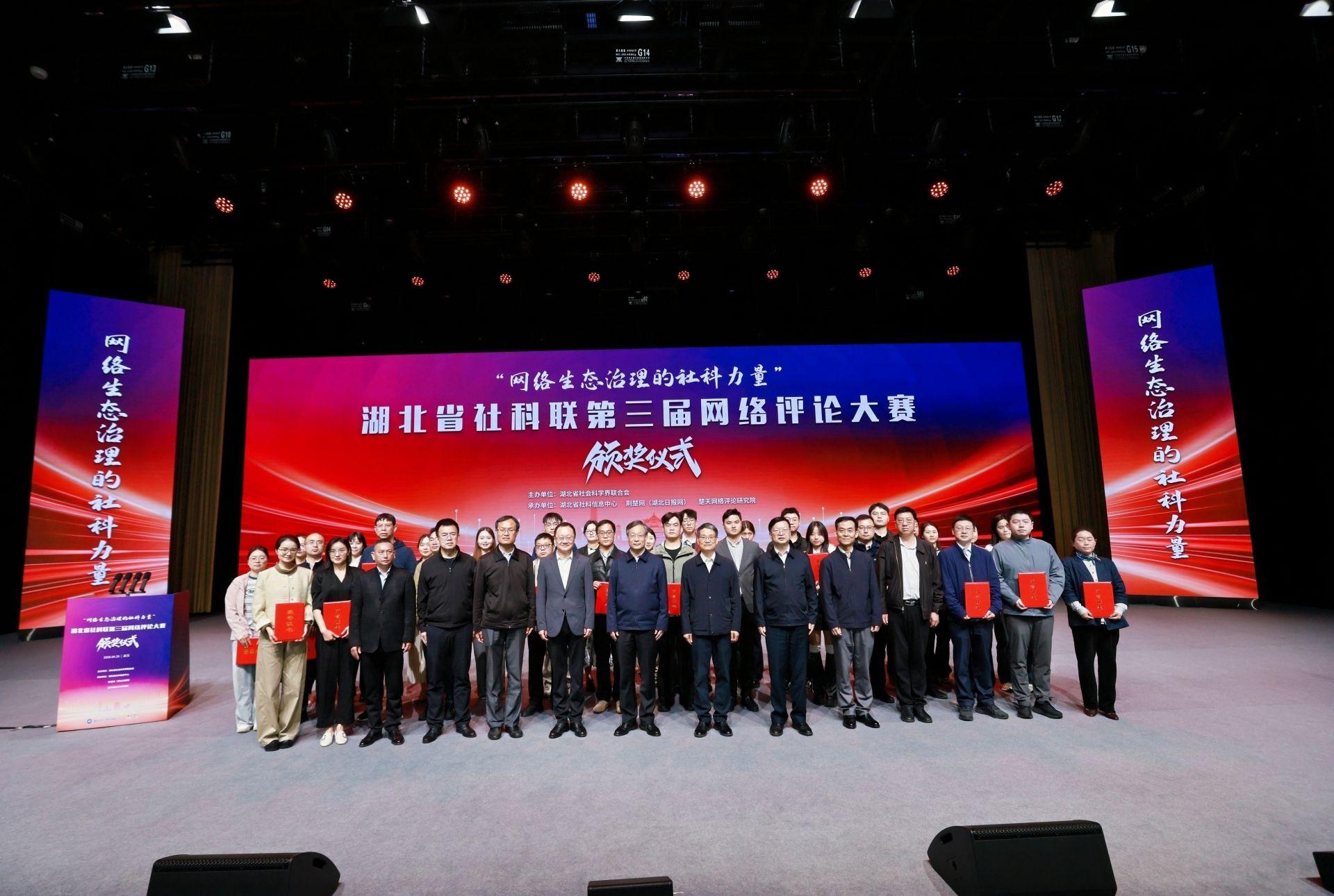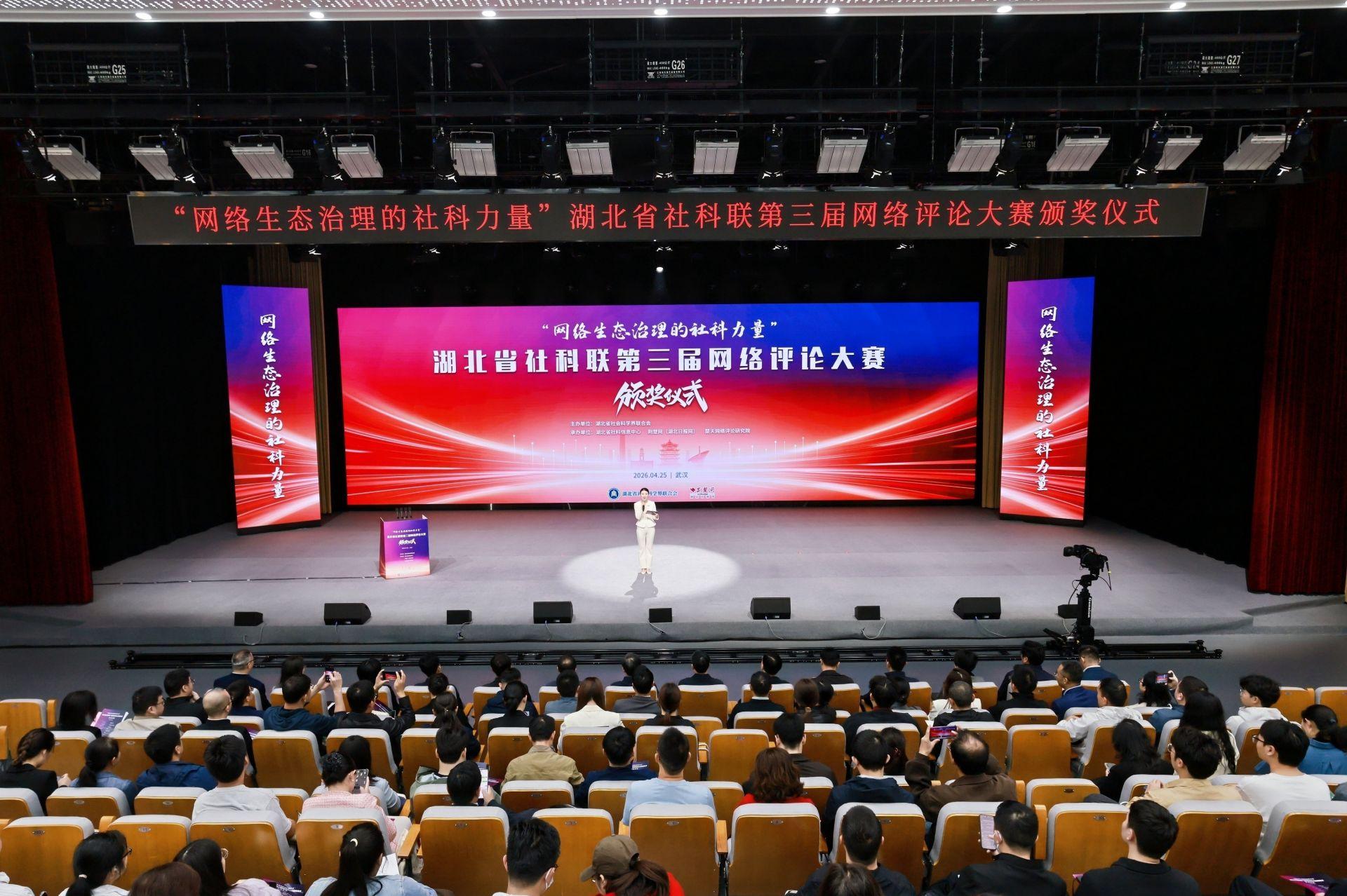 4月25日,湖北省社科联第三届网络评论大赛颁奖仪式在武汉成功举行。本届大赛聚焦“网络生态治理的社科力量”,汇聚各行各业的网评创作者,共探网络生态治理的可行路径。在当下信息奔流、舆论交织的网络空间里,万象纷呈、思潮激荡,而湖北省社科联第三届网络评论大赛,恰似一座思想灯塔,以理论为基固本培元,以评论为刃激浊扬清,以笔墨为桥凝聚共识,引领我们于纷繁世界里坚守立场,唱响了社科界温润有力、凝心向善的和合之声。