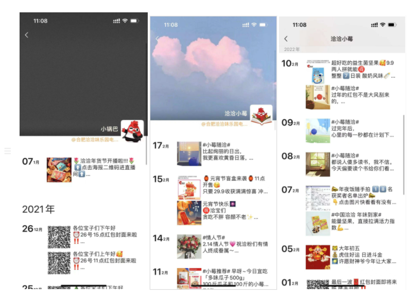 内容类别:日签、节日特惠、节日祝福(元宵、情人节)早安分享、拼团活动
