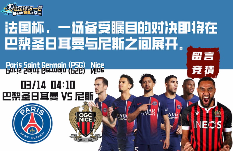 北京时间明日(14日)凌晨04:10,在法国杯方面,一场备受瞩目的对决即将在巴黎圣日耳曼与尼斯之间展开。