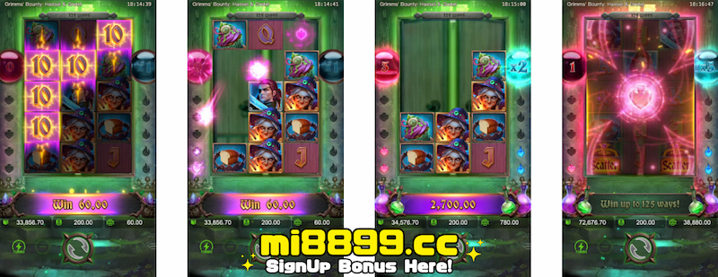 游戏机制包括:收集低赔符号可获得重转,收集高赔符号可提升乘数,重转和免费旋转功能让每一次旋转更具趣味和期待。整体RTP为96.75%,玩法紧凑且互动丰富,适合喜欢童话主题和高爆发力的玩家。