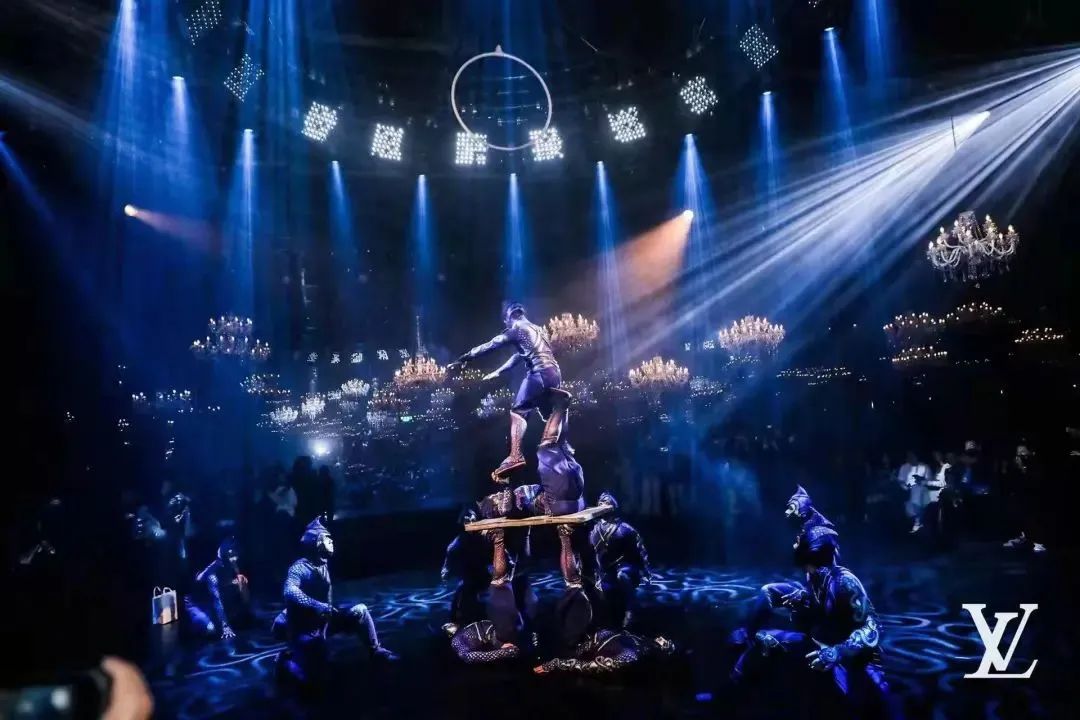 据悉,在10分钟的演出时间里,《X秀》将杂技蹬人和吊环搬进了LV秀场,每一刻都惊险又奇幻,艺术家们用精妙绝伦的高难度动作,让现场嘉宾连连惊叹的同时,也将走秀氛围推向一个小高潮。