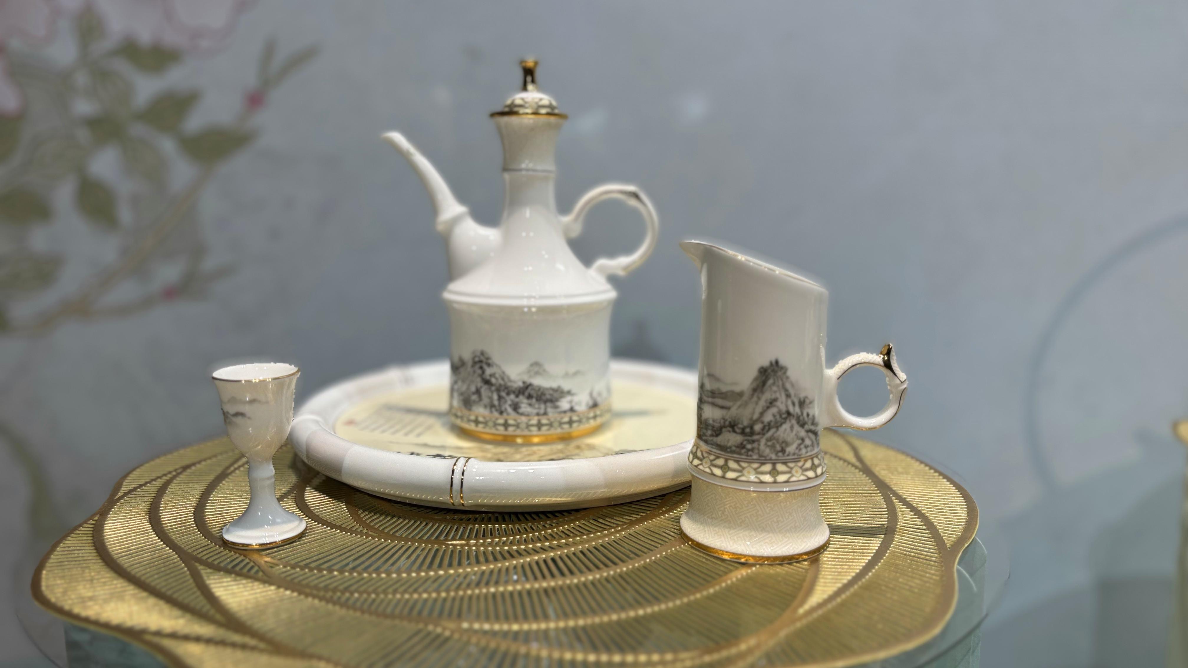 《富春山居》:由中国陶瓷艺术大师孙庆萍领衔,张轩溶、魏美丽、李刚参与创作。作品以《富春山居图》为灵感,运用高温釉中彩和浮雕装饰工艺,将传世名画的山水气韵凝于瓷上。“器物有生命,来自设计者的手,更来自心里的那一方天地。”孙庆萍说。