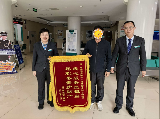 三次追款,三次暖心相助,经理始终将客户的需求放在首位。资金全部追回后,老人多次提出要送礼品表达感谢,都被经理婉言谢绝:“大爷,这是我们应该做的!”这份朴实的回应,道出了农行人的服务初心。寒冬挡不住真情,老人记挂着这份温暖,特意在清晨赶来送上锦旗,用最郑重的方式传递谢意。