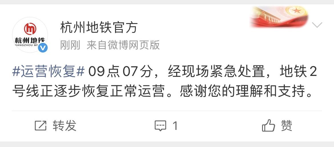 杭州地铁2号线早高峰停了十几分钟,官方已回应,可开延误证明