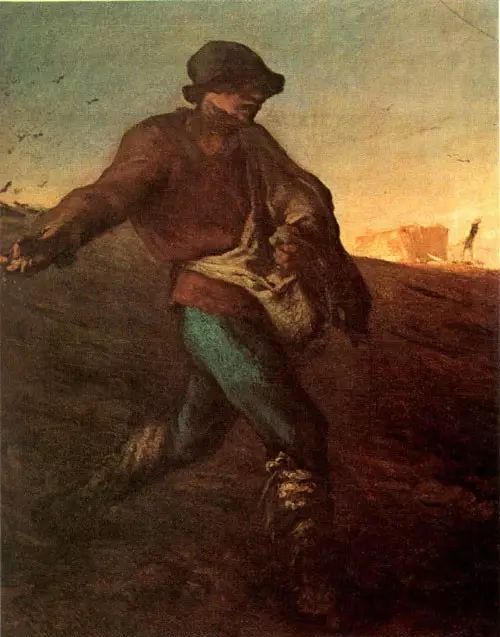 《播种者》是米勒在巴比松定居后的第一幅作品。后来他把这幅速写稿,改成了油画,并在巴黎的艺术沙龙展出,引起一片哗然。因为以农民为主角的画,挂在艺术沙龙里显得不伦不类,但是米勒并不理会这些。