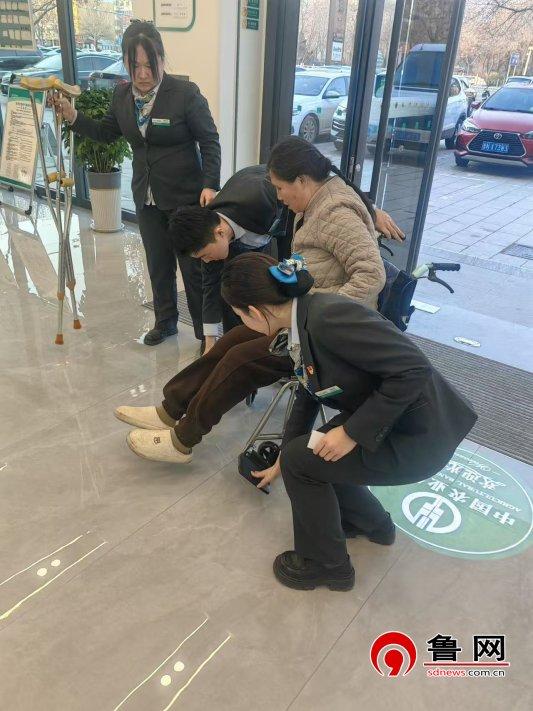 鲁网12月30日讯(记者 吴美琳 通讯员 赵楠楠)12月24日,农行德州开发区支行营业部内,一位腿脚不便的老人在女儿的陪伴下缓缓推门而入。老人拄着拐杖步履蹒跚,每一步都显得格外吃力。正在大堂的工作人员小赵第一时间注意到了这一情况。