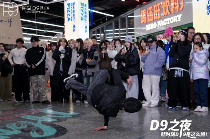 近日,南京D9街区“D9之夜”系列活动持续开展。这场以潮流随舞为核心的青年文化活动,凭借开放式互动场景、多元潮流元素,吸引了大批青年群体参与,现场活力四射、氛围热烈,不仅为城市青年搭建了释放活力的社交平台,更以年青力为引擎,激活了街区夜间经济新动能,彰显了南京D9街区在构建青年友好型夜生活场景中的核心承载作用。
