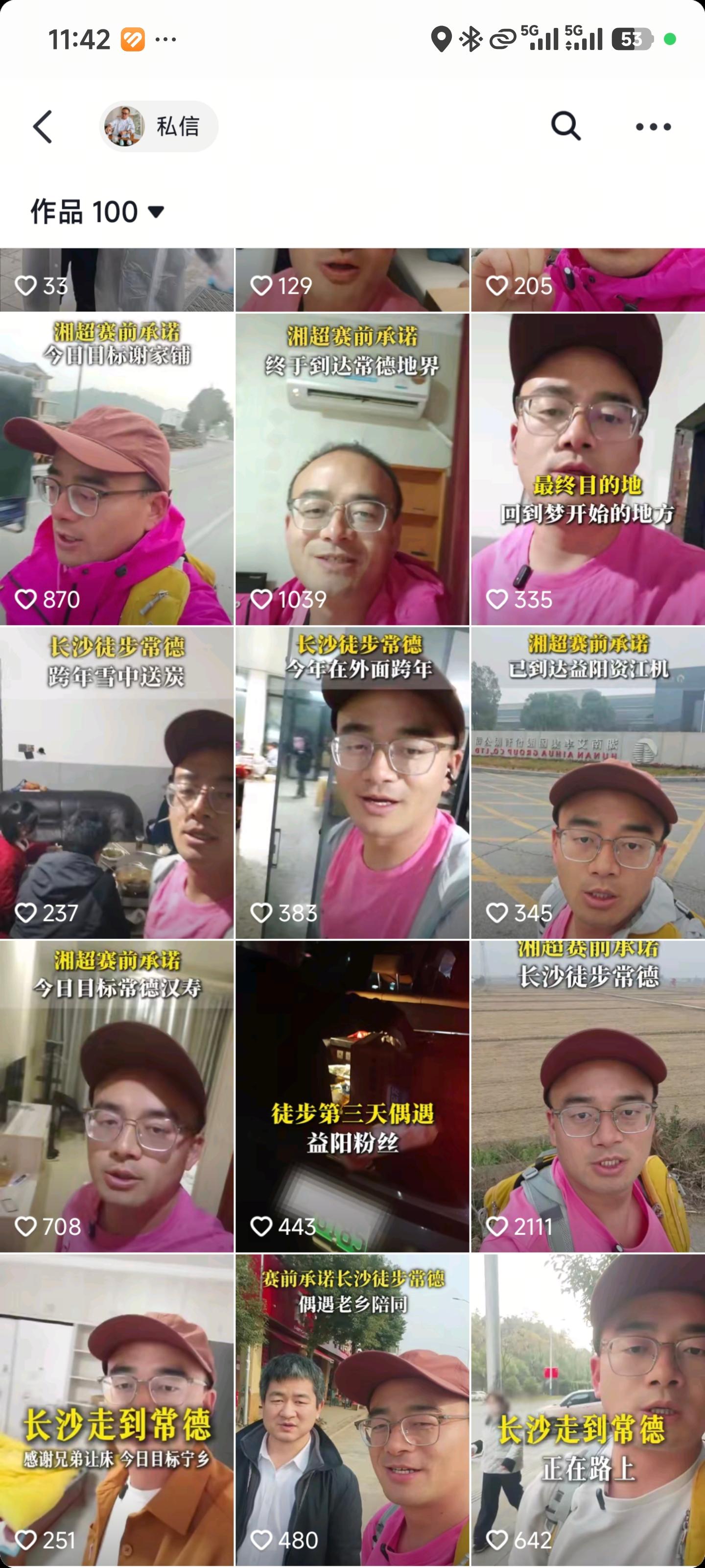 吴先生已更新十余条徒步视频。
