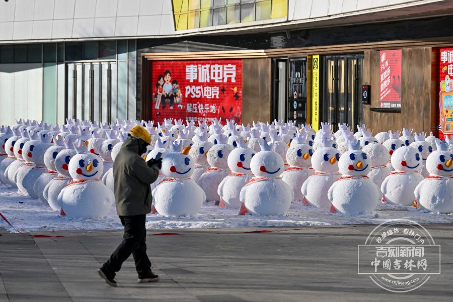 百只雪人,近日亮相长春站北站房的万达广场门前,成为市民冬日打卡热门地。