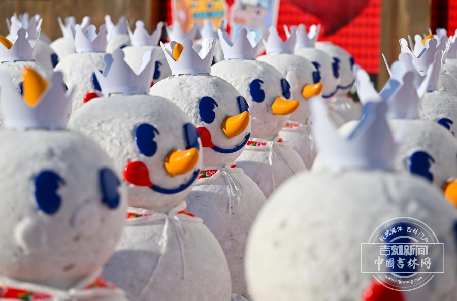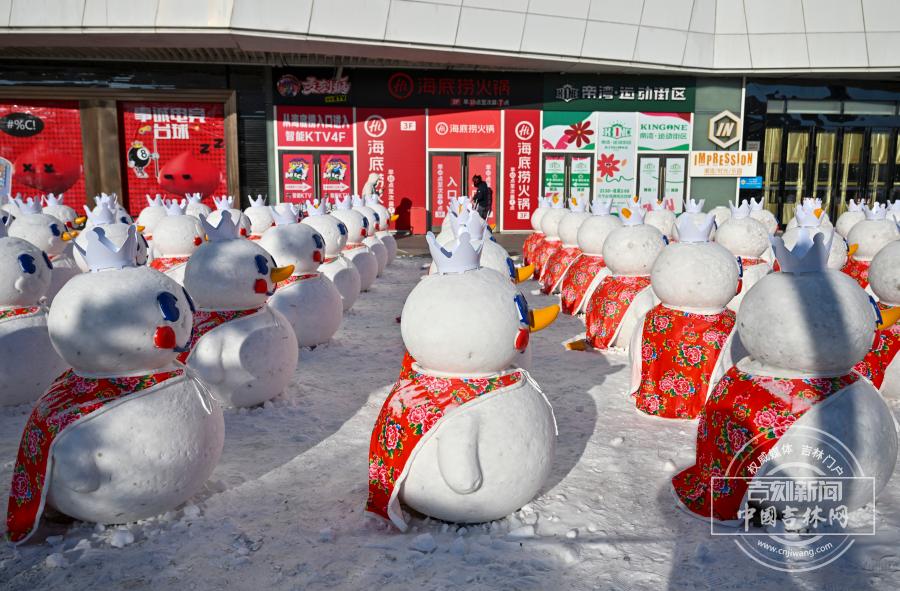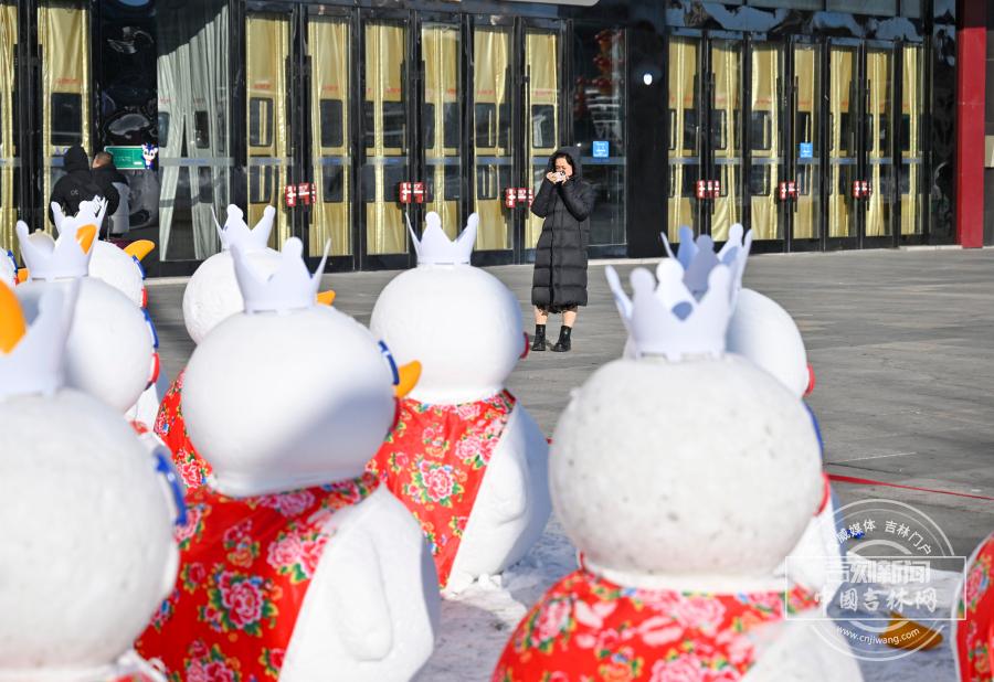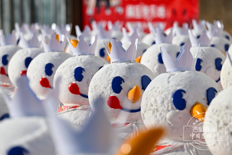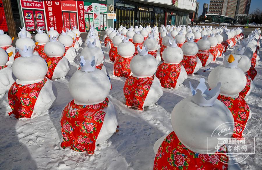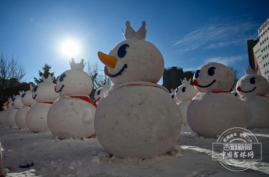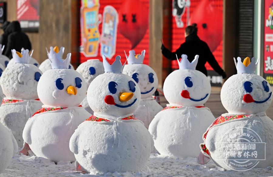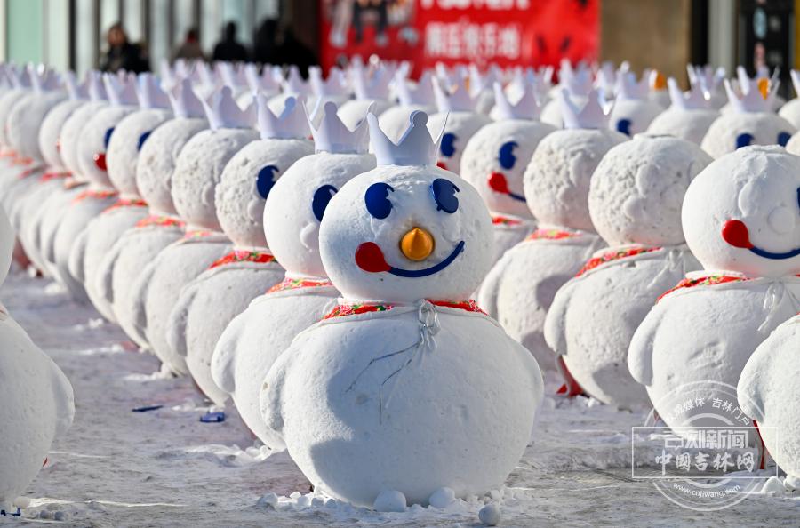 头戴皇冠、身披花袄的百只雪人,近日亮相长春站北站房的万达广场门前,成为市民冬日打卡热门地。