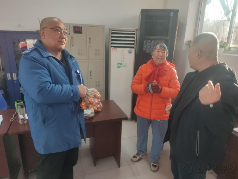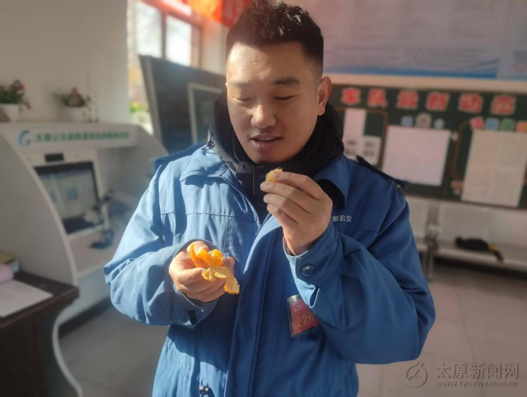 1月9日,一位公交常客王女士手提满袋金黄橘子走进太原公交集团南寨公交车场调度站,送给常年坚守岗位的公交车驾驶员们,以感谢他们十几年如一日的热情服务与无私奉献。