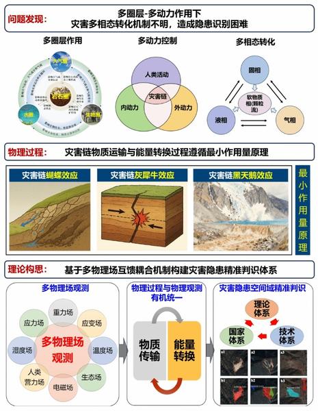 其中,隐患识别体系作为灾害精准防控的首要环节,其理论与技术突破尤为关键。我校李振洪教授团队在期刊同一专题发表的论文《复合链生重大地质灾害隐患识别理论与方法:现状与展望》为这一体系提供了前沿支撑。该团队将最小作用量原理引入复合链生重大地质灾害研究,揭示了灾害链演化中物质与能量传递的“最优路径”,并构建了“理论层面-技术层面-国家层面”三位一体的隐患识别框架。通过融合多源遥感、人工智能与地质力学,能够显著提升复合链生灾害隐患“识得全、测得准”的能力,是自然灾害整体防治体系中理论创新与技术突破协同的典范。
