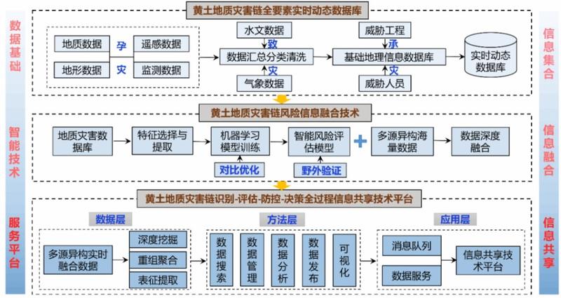 此外,彭建兵院士和黄强兵教授同期发表的《黄土高原地质灾害链治理面临的挑战与应对》一文介绍了自然灾害防治体系建设构想在典型区域的实践与应用。该研究系统揭示了黄土高原灾害链“区域群发、时间集中、链式多样、演化复杂、工程危害大”等特征,精准诊断了其治理在演化机理、监测预警、风险评估和防控技术方面面临的挑战,并创新性地提出了涵盖动力学机制突破、协同监测预警、多场景风险评估、人-地-工程协调防控及智能决策平台的系统性应对策略。这项针对黄土高原的专题研究,为自然灾害防治体系在关键地域单元的落地提供了具体的技术路线和解决方案。