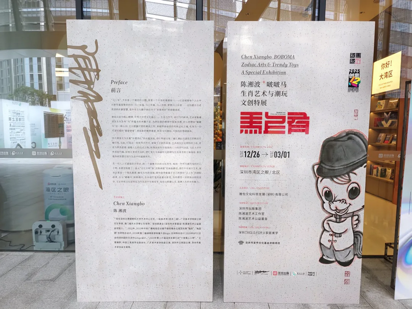 近日,作为“2025 深圳创意十二月”重要文化活动之一,《陈湘波啵啵马生肖艺术与潮玩文创特展》在深圳市湾区之眼(北区)正式开幕。展览以传统工笔画艺术为根基,融合人工智能、数字影像等前沿科技手段,通过展览展示、文创公益计划与公共美育活动相结合的方式,探索传统文化在当代城市语境中的创新表达路径。本展览将持续至 2026 年 3 月 1 日,面向公众免费开放。