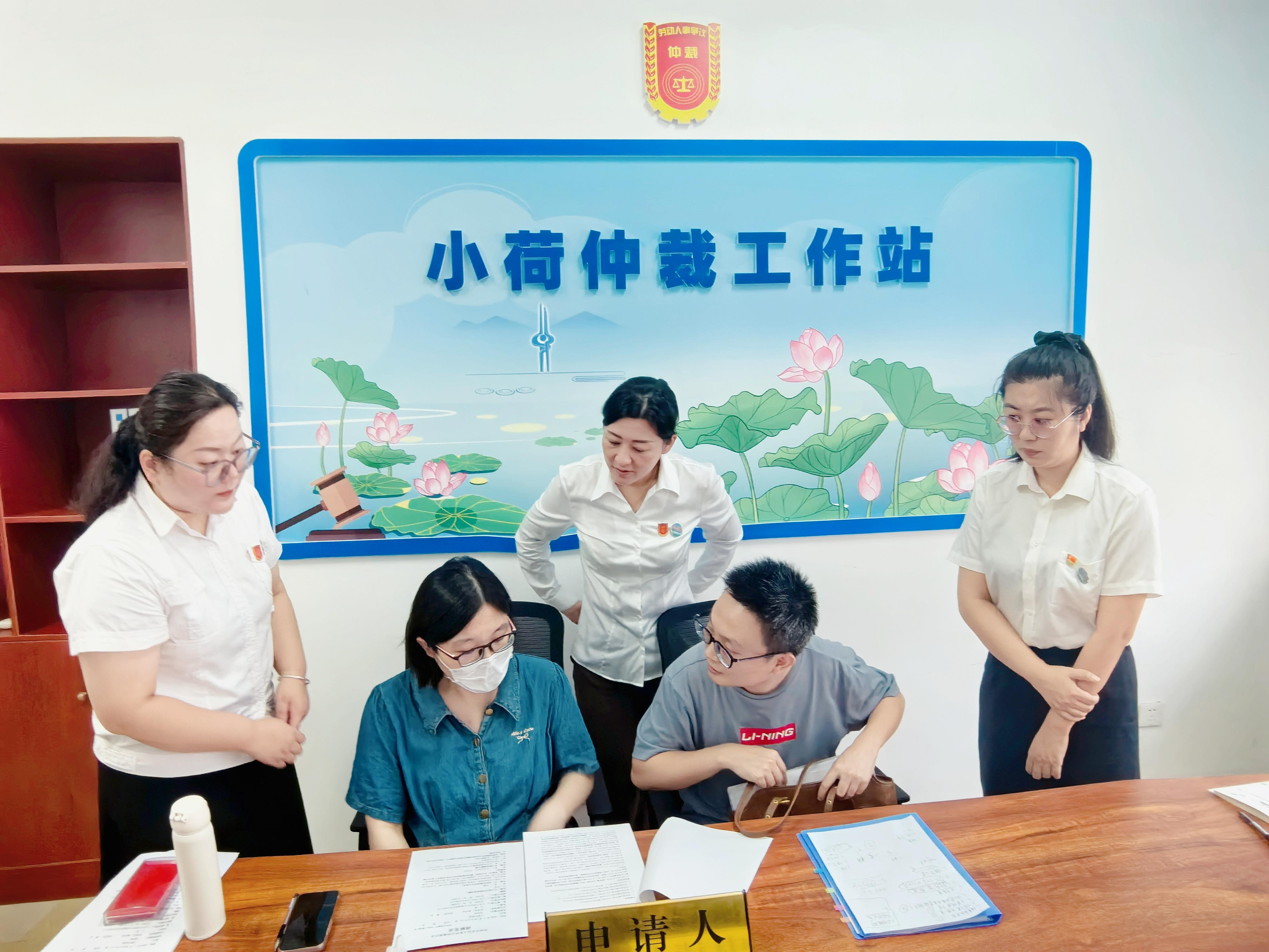 在这里,工作流程被严格规范:接待咨询、事实调查、多方调解、达成协议、履行跟进。如果调解失败,工作站会提供清晰的仲裁指引。而在“小荷仲裁工作站”处理的案件,调解率达到了100%的傲人成绩,收获了群众们的一致好评。
