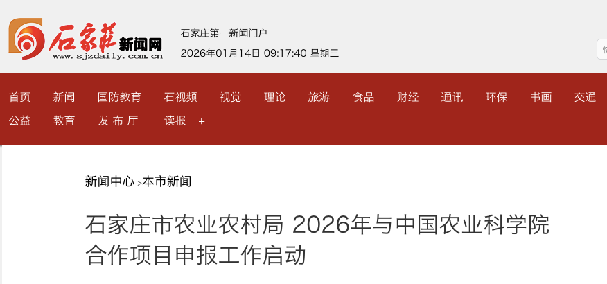 日前,石家庄市农业农村局正式启动2026年度与中国农科院合作项目申报工作。启动此项工作旨在深化石家庄市与中国农业科学院(以下简称“中国农科院”)的战略合作,充分发挥中国农科院的科研与专业优势,加快推进农业科技创新。