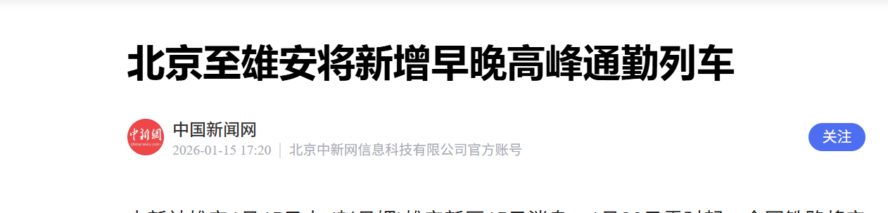 “北京至雄安将新增早晚高峰通勤列车 最快1小时5分钟” 的相关文章