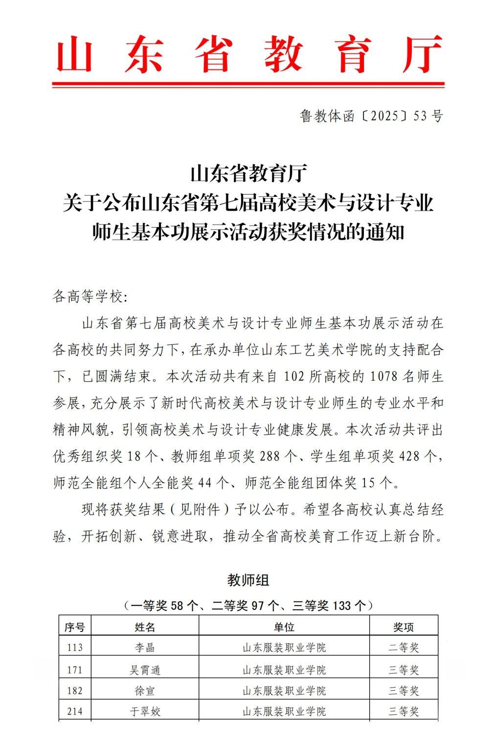 山东服装职业学院教师在山东省第七届高校美术与设计专业师生基本功展示活动中喜获佳绩