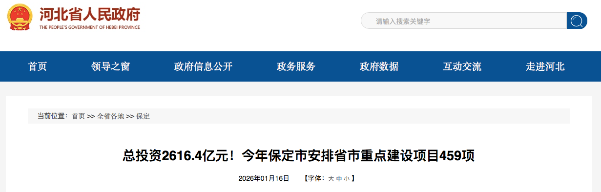 总投资2616.4亿元!今年保定市安排省市重点建设项目459项