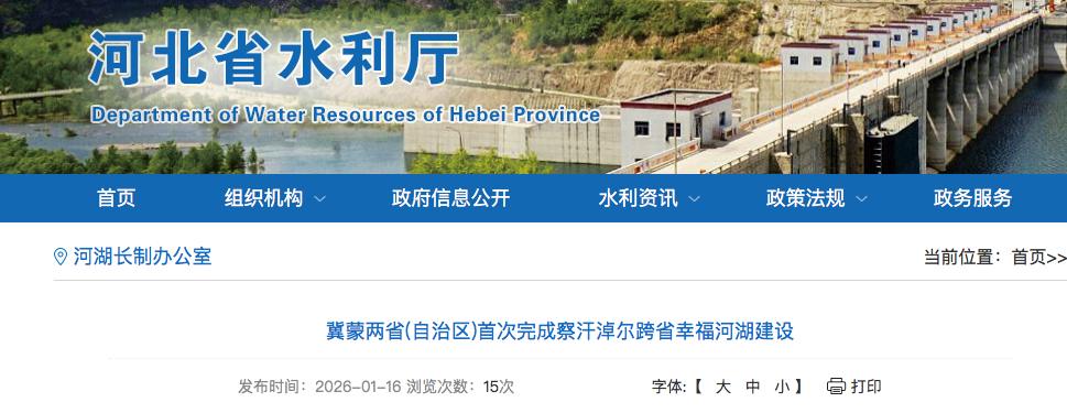 冀蒙两省(自治区)首次完成察汗淖尔跨省幸福河湖建设