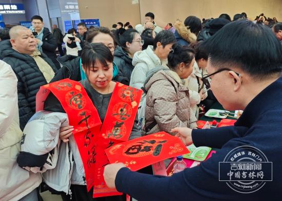 活动现场暖意融融、年味浓郁,红火的春联纸、饱满的笔墨香萦绕四周,市民游客有序排起长队,满心期待地等候专属的新春祝福。书家们凝神聚力,将对新年的期盼、对美好生活的祝愿凝于笔端,一撇一捺间尽显书法韵味。既有饱含吉祥寓意的“福”字、经典喜庆的春联,也有《龙马精神》《骏马踏春》《吉祥吉地》等紧扣马年主题、彰显吉林地域特色的书法佳作,每一幅作品都承载着深厚情谊,赢得了现场群众的阵阵喝彩,让大家在笔墨氤氲中感受传统文化的魅力,为即将到来的新春佳节增添了浓厚的文化底蕴。