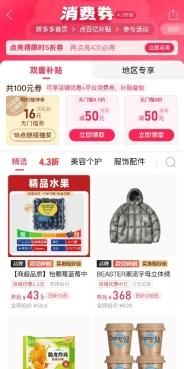▲从拼多多首页进入百亿补贴,分别点击加倍补专区、消费券专区即可参与活动
