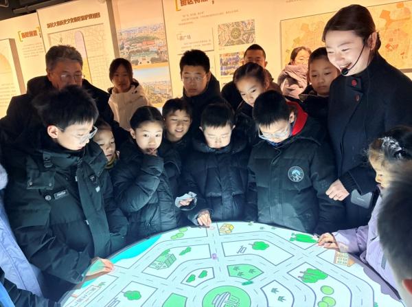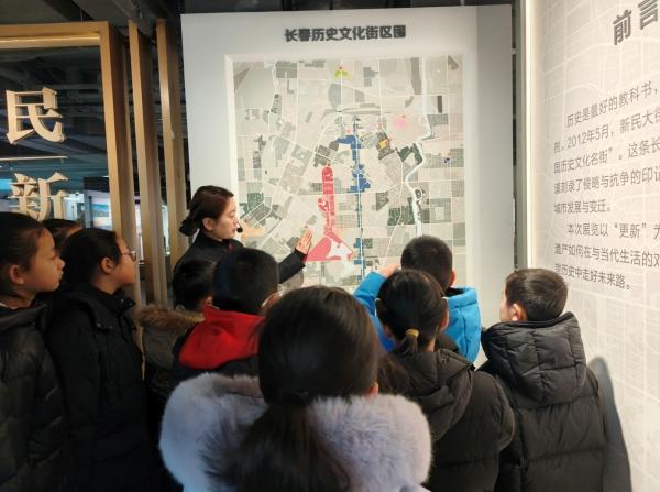 活动中,孩子们在讲解员的带领下,走进“新民大街”历史影像与复原实景展区。老建筑构件、旧式路牌、泛黄的历史照片,生动再现了长春城市发展的早期格局,让孩子们直观感受到一座城市生长的起点。随后,通过对不同时期城市规划图纸、历史文物与影像资料的讲解,展览清晰勾勒出长春从历史走向未来的发展轨迹,帮助青少年在实物与故事中读懂岁月沉淀下的城市记忆。