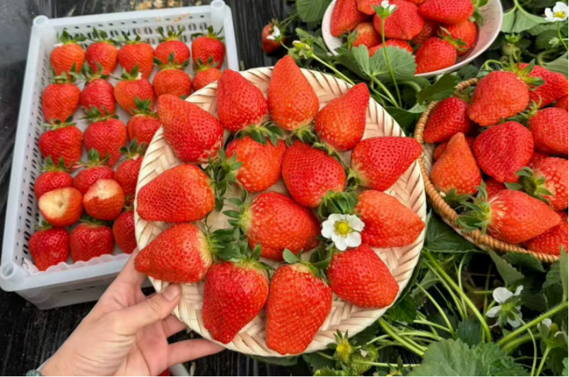 △隋珠草莓,因外外表深红发亮、口感甜软多汁、耐运输等特点,逐渐被人们熟识。