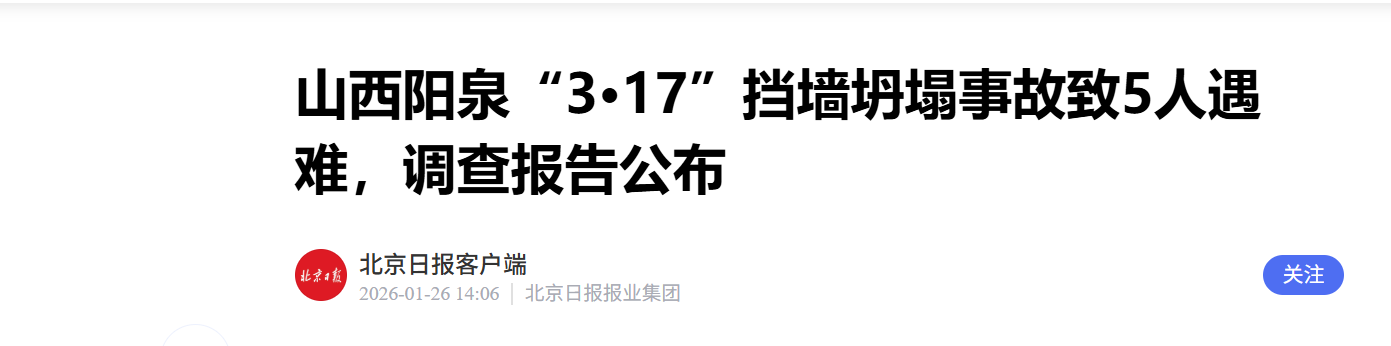 山西阳泉“3·17”挡墙坍塌事故调查报告公布