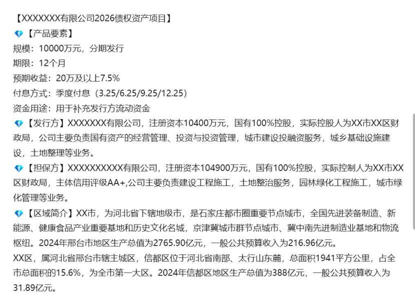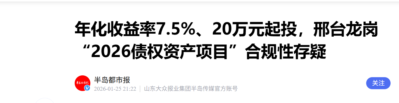年化收益率7.5%,邢台市龙岗投资公司2026债权资产项目合规性存疑