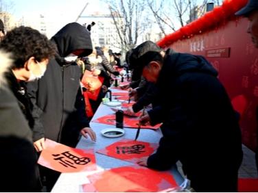 系列活动于腊八节正式拉开帷幕。当天上午,“万福迎春——山东省文联第十五届‘百县千村’书法惠民活动”现场气氛热烈,墨香四溢。书法名家现场铺纸研墨,为市民免费书写并赠送春联与“福”字。一幅幅遒劲有力的“福”字,一对对寓意吉祥的春联,从书法家笔下流淌而出,传递到翘首以盼的市民手中。