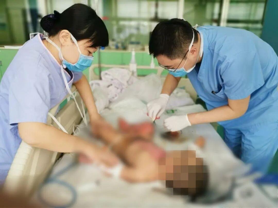救治团队迅速对伤情展开评估,确诊孩子为部分深 Ⅱ 度合并浅Ⅱ度烫伤,随即启动标准化救治流程:通过清创包扎隔绝感染源,建立静脉通路及时补液抗炎,补充人血清白蛋白减少组织渗出,一套“组合拳”为创面愈合筑牢基础。
