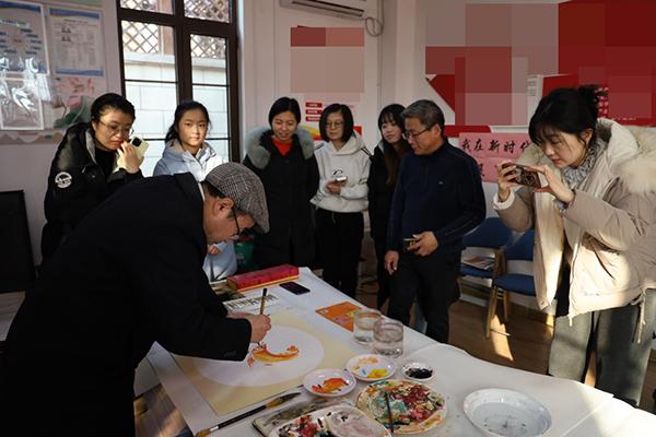 “这是金龙鱼,色彩鲜亮,寓意着年年有余……”老师们边创作,边耐心向围观居民讲解作品寓意,现场互动频频,文化气息与节日暖意交织交融。