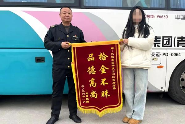 鲁网1月30日讯(记者 王姝深 实习记者 刘悦 通讯员 郭文佳)近日,市民赵女士在乘坐青平班线时不慎将钱包遗落在车上,包内有现金、银行卡等重要物品。该班线驾驶员耿希岩在收车检查时发现钱包并第一时间上交,最终物归原主。赵女士专程送来锦旗致谢,耿师傅谦逊地表示:“保障乘客的人身和财产安全,本来就是驾驶员的本职所在。”