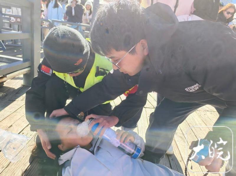 当天14时30分许,一名来自内蒙古呼伦贝尔的中年女性游客突感不适,随即晕倒在地,面色苍白、呼吸急促,情况十分危急。