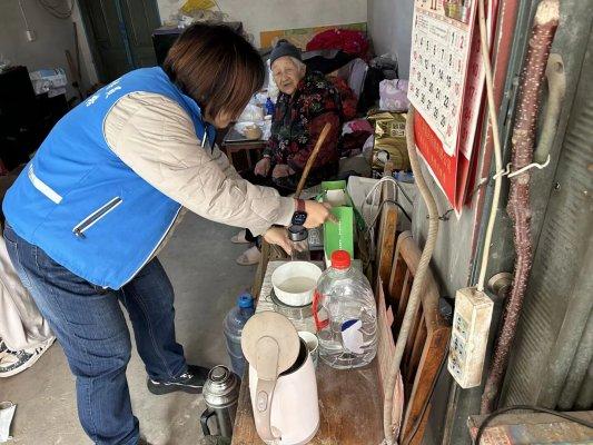 “刘奶奶,我们来看您啦!快过年了,给您带了些吃的,祝您新的一年事事顺心,身体健康!”网格员和志愿者敲开了独居老人刘奶奶的家门。刘奶奶连忙热情地招呼大家进屋,网格员顺势坐在老人身边,拉起家常,详细询问老人的饮食起居、身体状况,倾听老人的心声,嘱咐她有任何生活需求都要及时联系我们。刘奶奶笑着说:“谢谢你们常来看看我,我身体挺好的,不用惦记着我!”随后,网格员帮刘奶奶整理衣物与卫生,又仔细检查了家中的水电燃气设施,查看燃气管道是否有泄漏、电器线路是否老化、水龙头是否漏水,逐一排除安全隐患。“刘奶奶,您家的电源电线都是好的,不过水壶用完后记得及时关闭电源,晚上睡觉前也检查一下门窗,这样住着更安全。”网格员耐心叮嘱道。