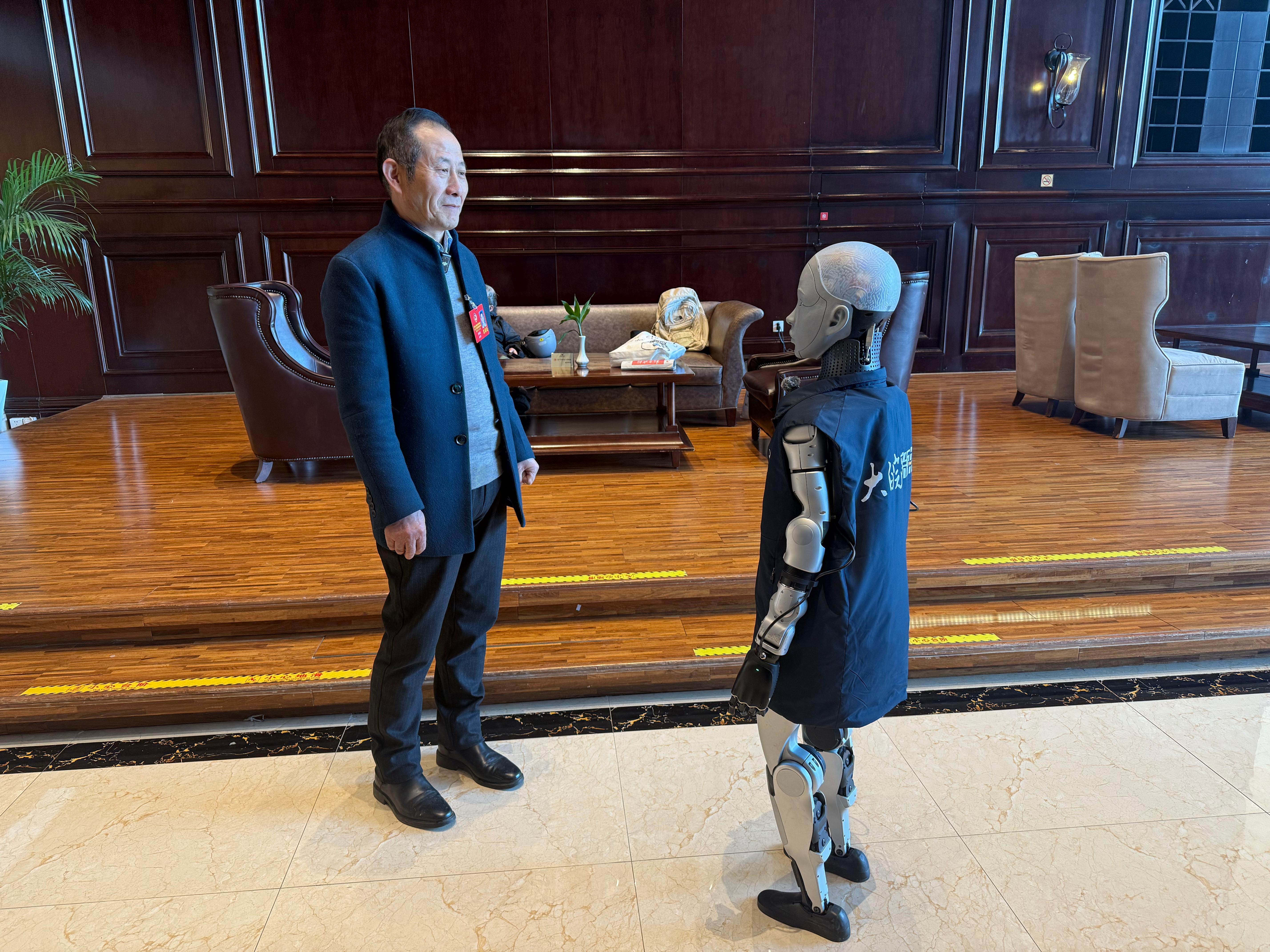 省政协委员、阜阳市掌上网络科技有限公司总经理赵飞表示,这是他第一次接受人形机器人记者采访,“‘她’提的问题很专业,为‘两会报道’增添了新活力,让‘两会声音’以更新颖的方式传播。”赵飞还与“小皖”互动:“小皖,你怎么看合肥这座城市?”“你希望未来合肥变成什么样?”“你知道阜阳吗?”“小皖”则一一回答。