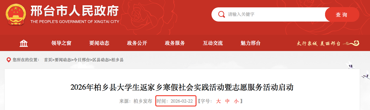 值得注意的是,该文章来源为柏乡发布,发布时间为未来日期--2026年2月22日,猜测系工作人员疏忽,可能为2月2日。