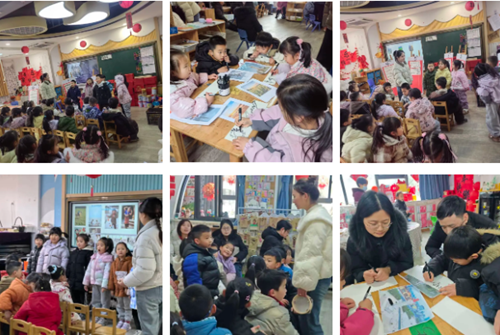 自主游戏时间,教室变成了热闹的“新年小镇”,孩子们剪窗花、做灯笼、玩单双数游戏、搭建“新春家园”、描红福字、给家人“写信”,在轻松的游戏氛围中,锻炼手部肌肉、培养逻辑思维、学会合作商量。游戏结束后,孩子们把最难忘的瞬间画下来,在小组中轮流分享自己的经历,“我先玩了……后来遇到了……最后我……”,清晰的表达、连贯的梳理,让家长们看到了孩子的成长与进步。