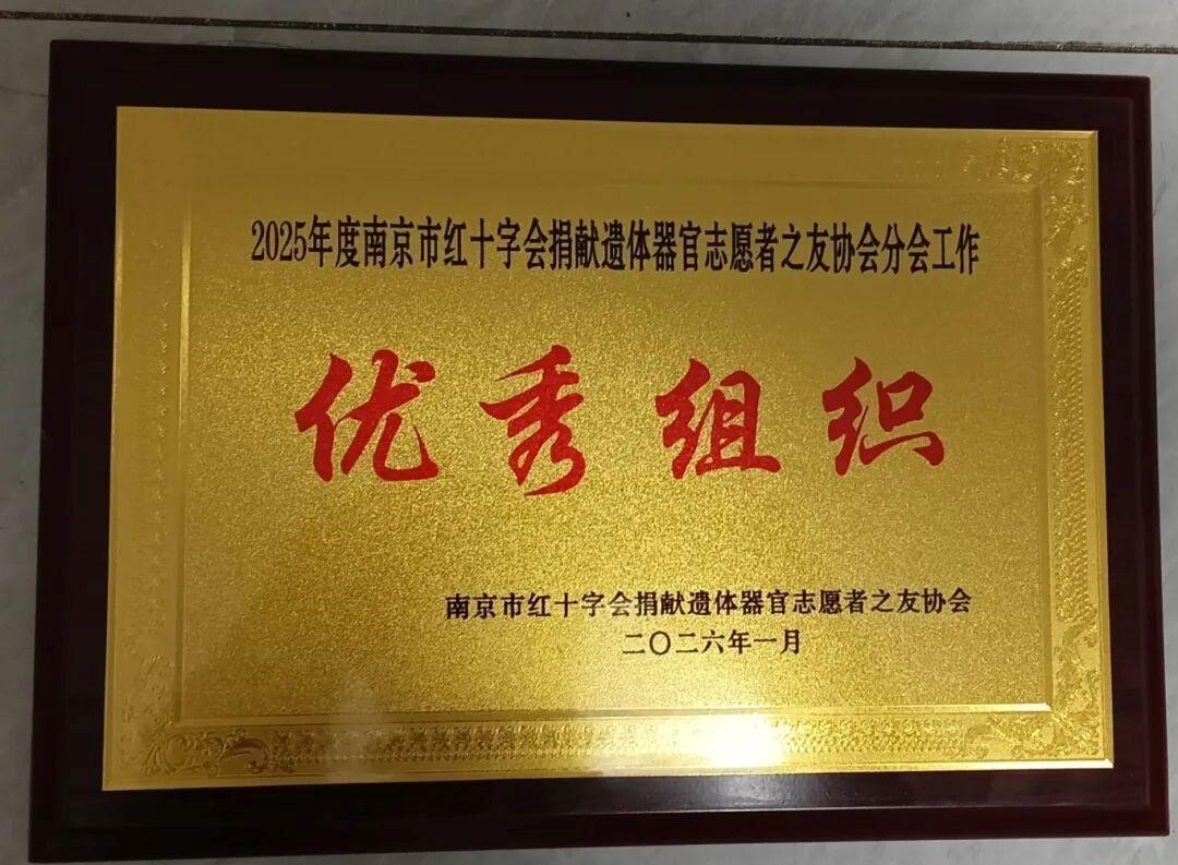 热烈祝贺南京市溧水区红十字会捐献遗体器官志愿者之友协会分会,在2025年度南京市红十字会捐献遗体器官志愿者之友协会分会工作中荣获“优秀组织”称号。同时,杨小飞同志获评“优秀志愿者”。