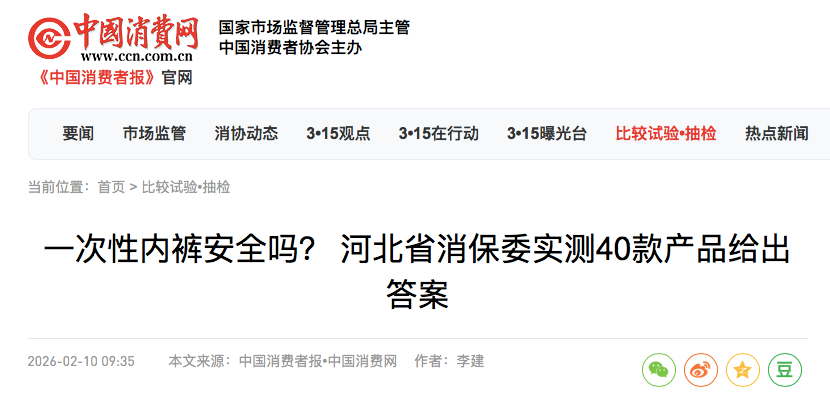 一次性内裤安全吗?河北省消保委实测40款产品,12款未标纤维含量